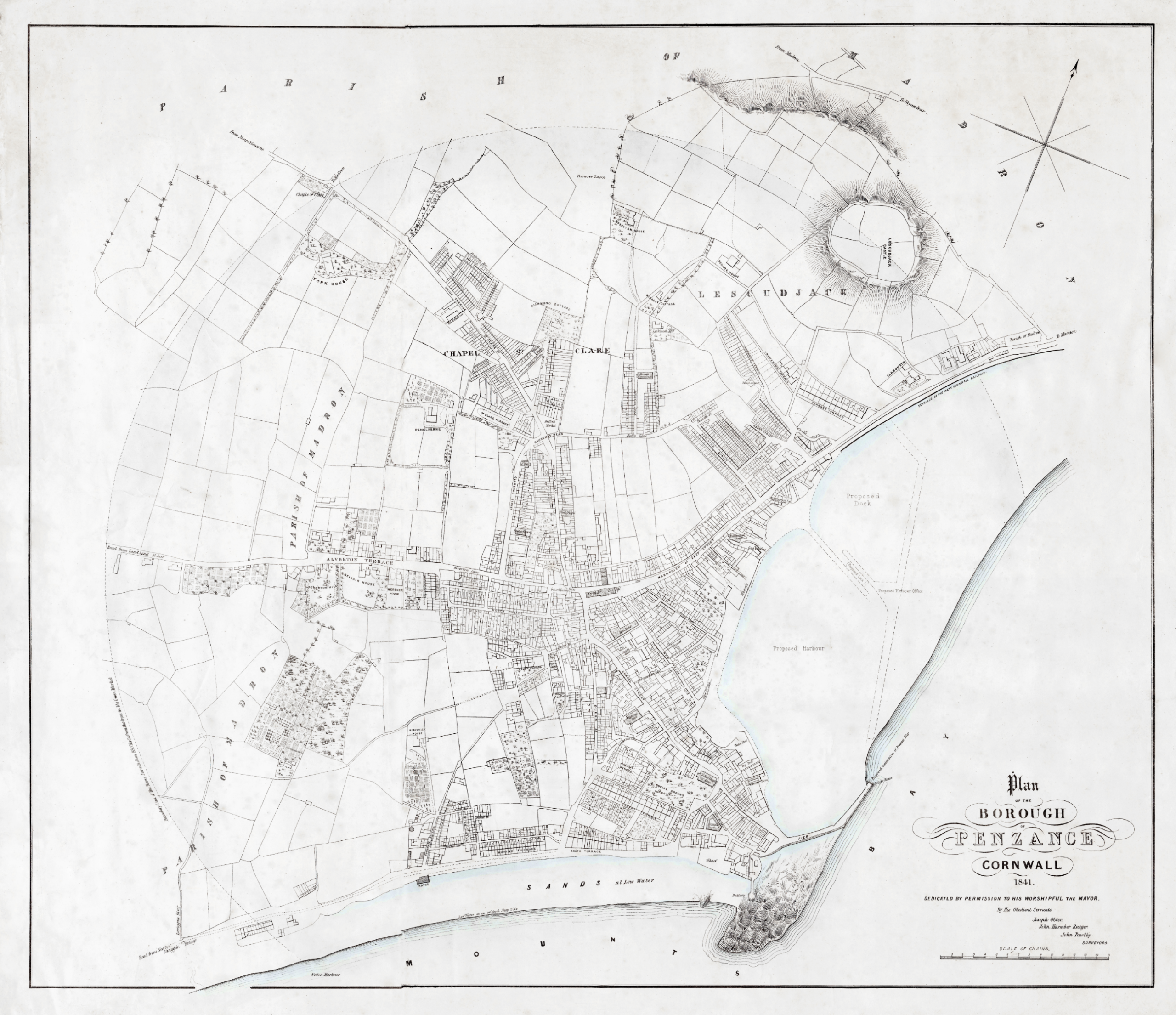 A high quality reproduction of the 1841 map of the Borough of Penzance.