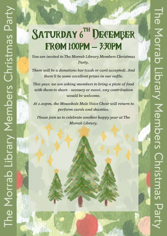We are delighted to invite our members to the Morrab Library Members Christmas Party on Saturday 6th December from 1:00pm – 3:30pm for some festive fun!